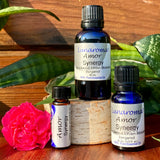 Synergies are made up of a combination of 2 or more pure essential oils and/or absolutes combined together WITHOUT a carrier oil.