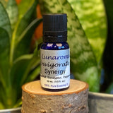 Lunaroma Synergies are masterfully blended. Each essential oil is synergistically chosen to support the over all blend where the whole synergy is greater than the sum of its parts.